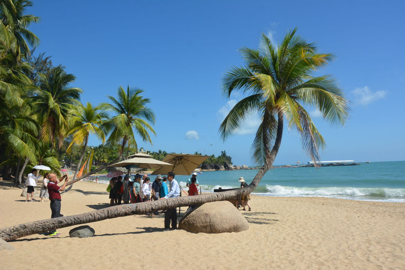 (画面展示亚龙湾海滩)